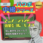 2025年9月20日 / 最終更新日時 : 2025年8月21日 チビ マリオ ☆授業☆ 【パワポ中級⑨】アニメーション効果をコピーして時短! 複雑なアニメーション設定 毎回やるの面倒じゃないですか? 「アニメーションのコピー」機能で 一発で同じ設定ができちゃいます ①こんなときに使う 同じアニメーションを別の図形にもつけたい 初めからコピーしていたら設定しなく […]