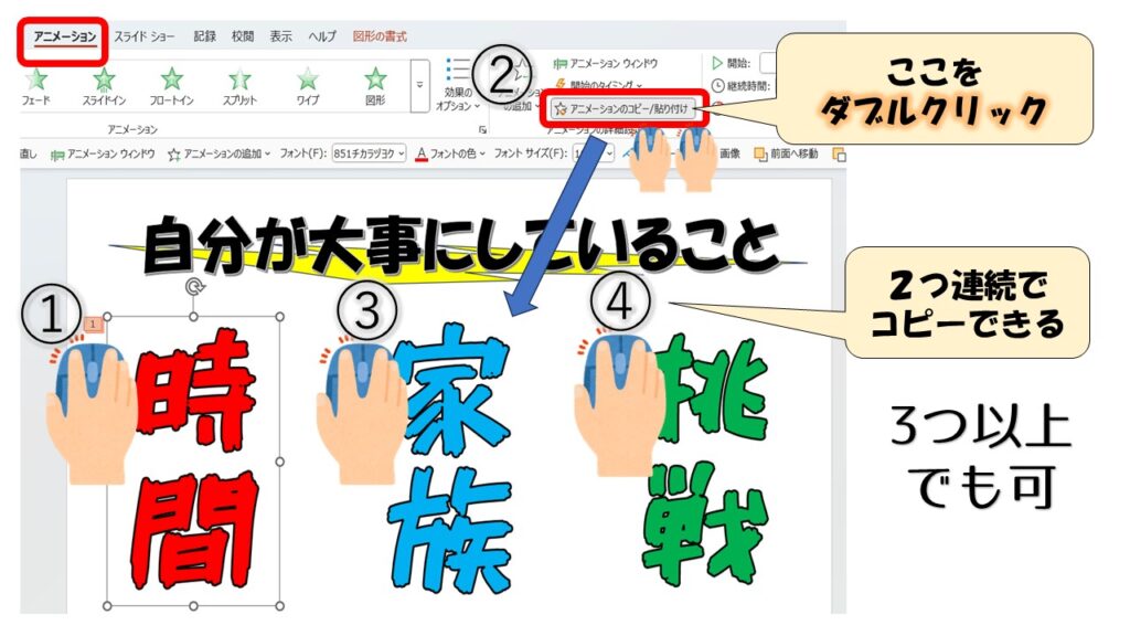 【パワポ中級⑨】アニメーション効果をコピーして時短!