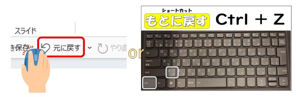 「元に戻す」ボタンで1つ前に戻ると便利!